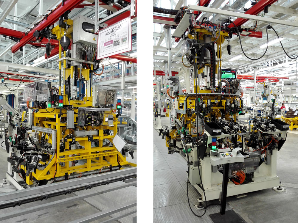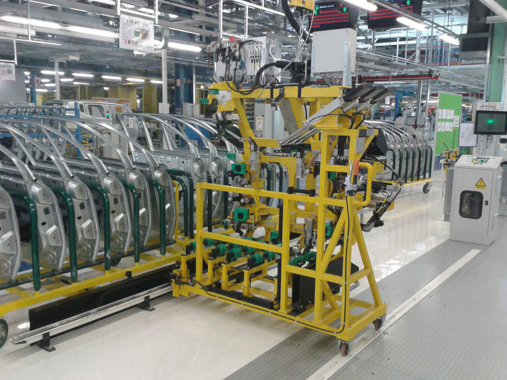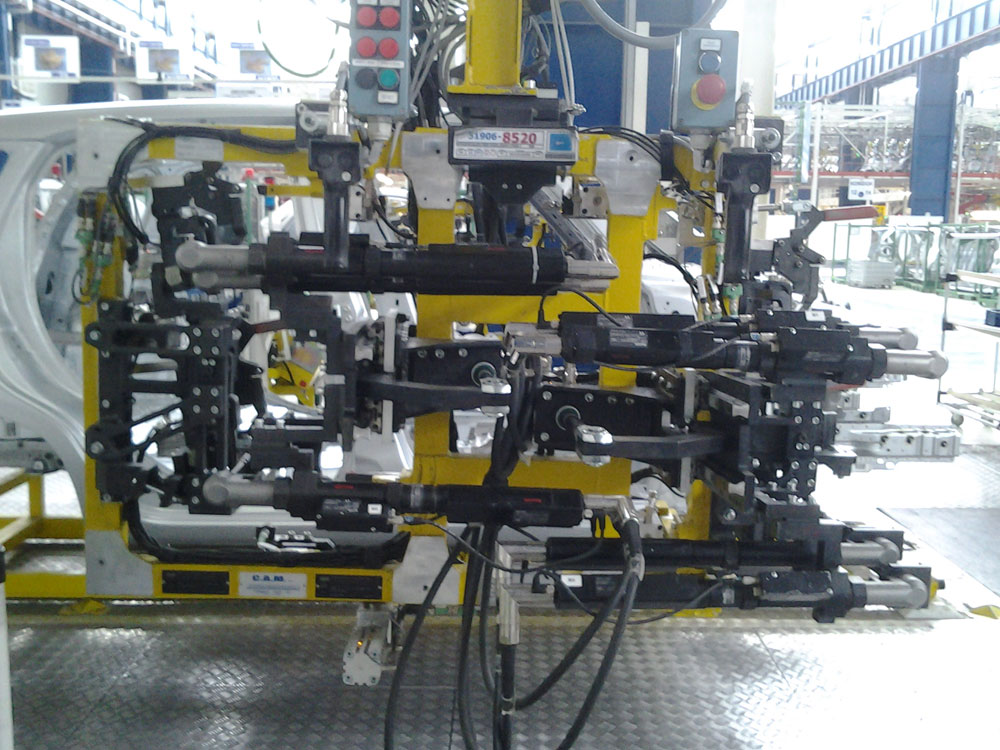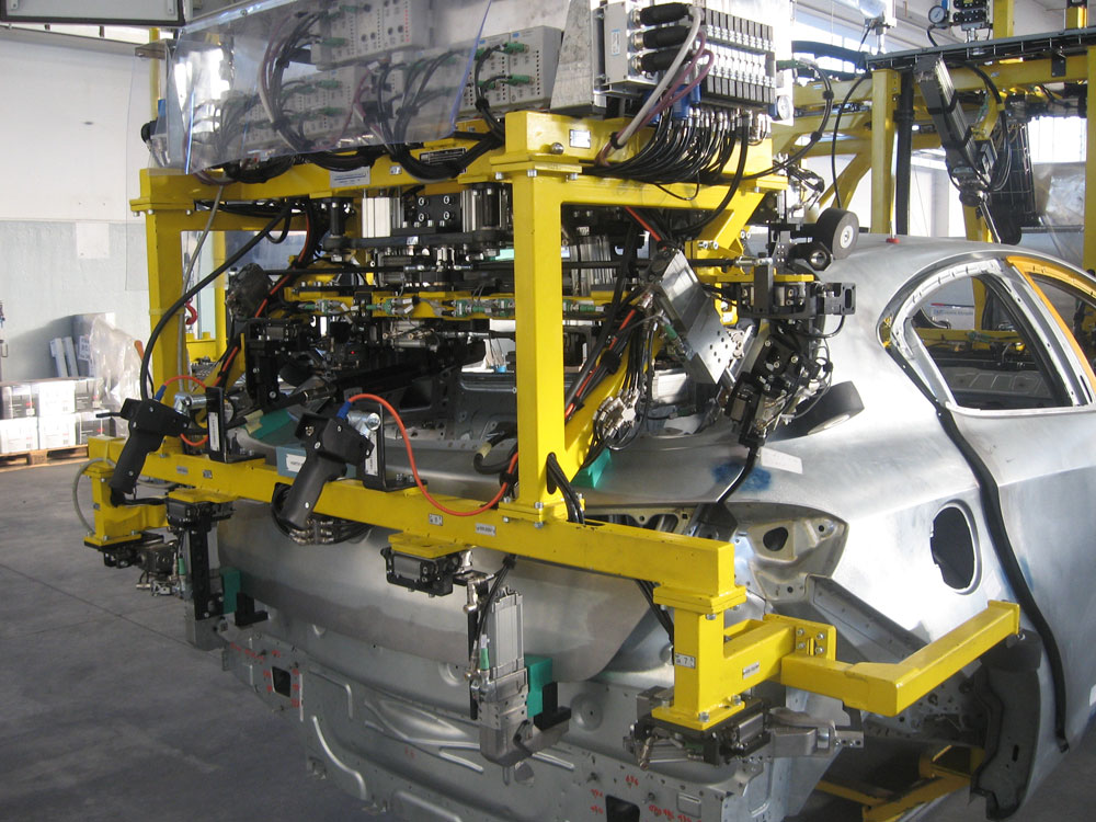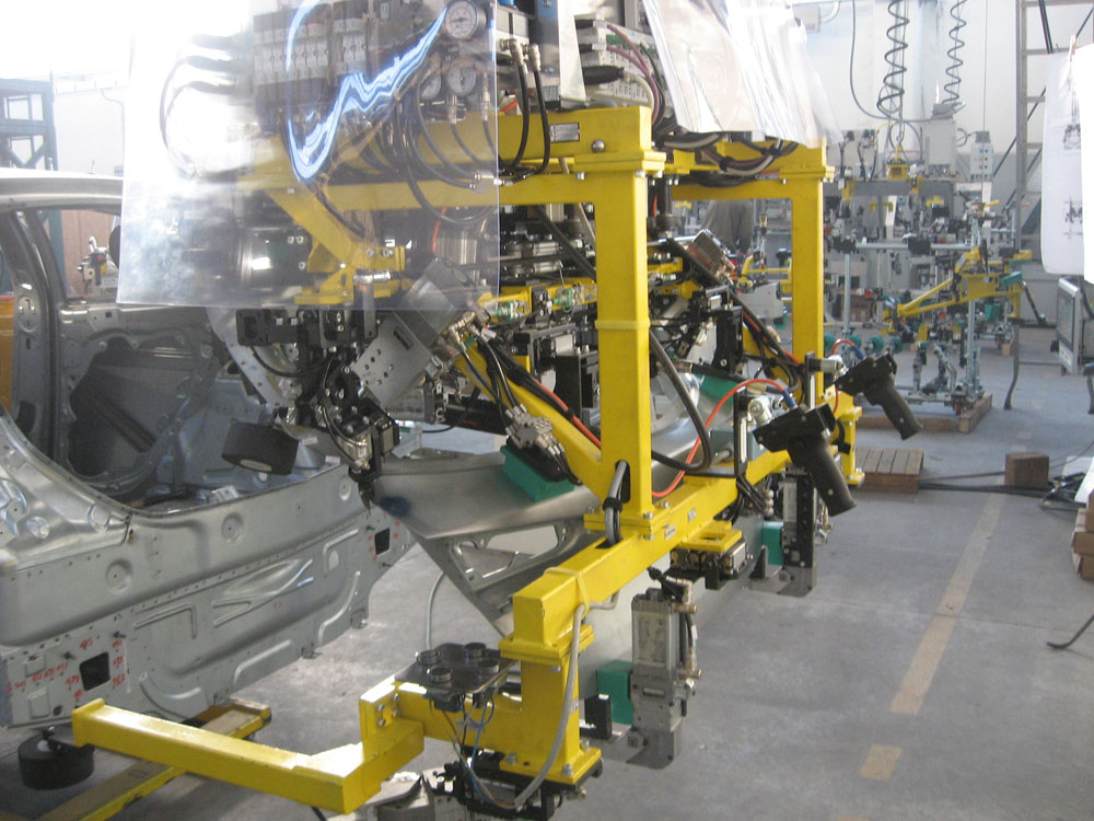 Realizziamo attrezzi di ferratura tradizionali ed evoluti per montaggio parti mobili della vettura "chiavi in mano" a partire dallo studio e progettazione meccanico / pneumatico / elettrico rispettando il metodo ed il capitolato cliente fino alla messa in servizio e l'ottenimento del tempo ciclo.